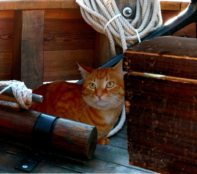 Als ich den kleinen Wettbewerb „Auf der Suche nach Rotbarts Erben“ gewonnen hatte, war ich mir gar nicht bewusst, was das alles nach sich zieht. Klar, über den alten Rotbart weiß ich so Einiges – sogar mehr, als die Menschen wohl je herausfinden werden. Jede Katze, die ein gewisses Interesse an Geschichte hat, kennt den legendären Schiffskater. Nicht wenige stammen – so wie ich – sogar von dem vierbeinigen Seemann ab. Aber nähere Informationen über meine eigene Linie des weltweit verbreiteten Rotbartclans, muss ich mir wohl erst noch mühsam erarbeiten. Einen wichtigen Ansatz dazu hat mir allerdings Rotbarts Biograph Wolfgang Schwerdt geliefert.