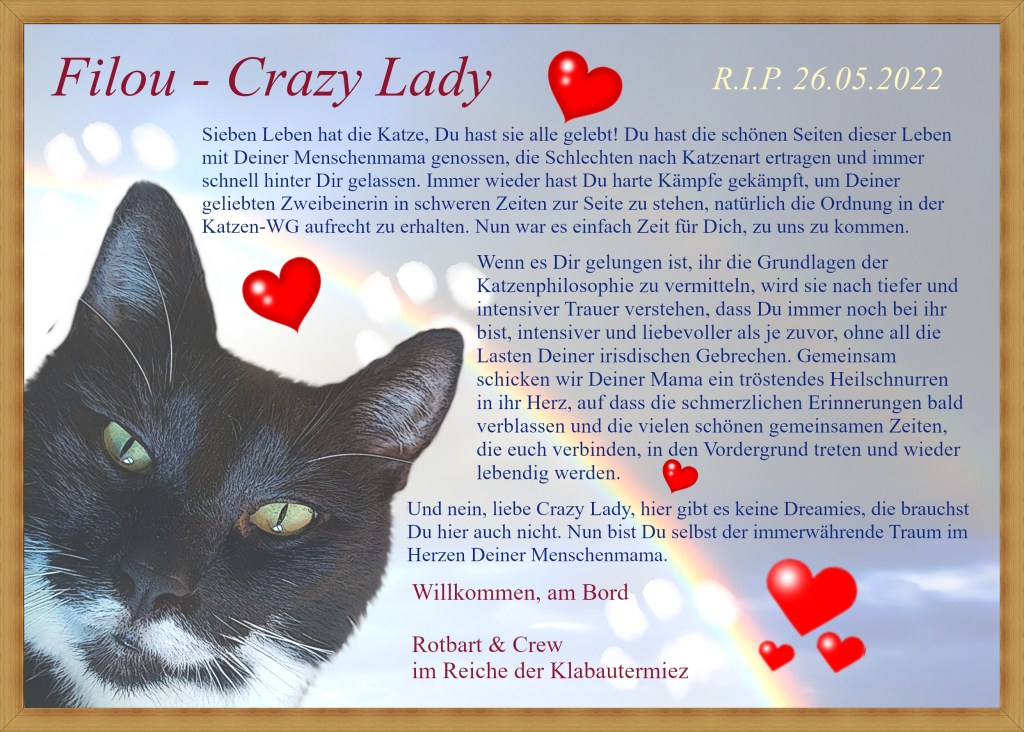 In der Schiffskatzentaverne wird es zu den Covern demnächst wohl auch wieder eine kleine Verlosung geben. Wer die nicht verpassen möchte, sollte dort Follower werden, das lohnt sich sowieso.