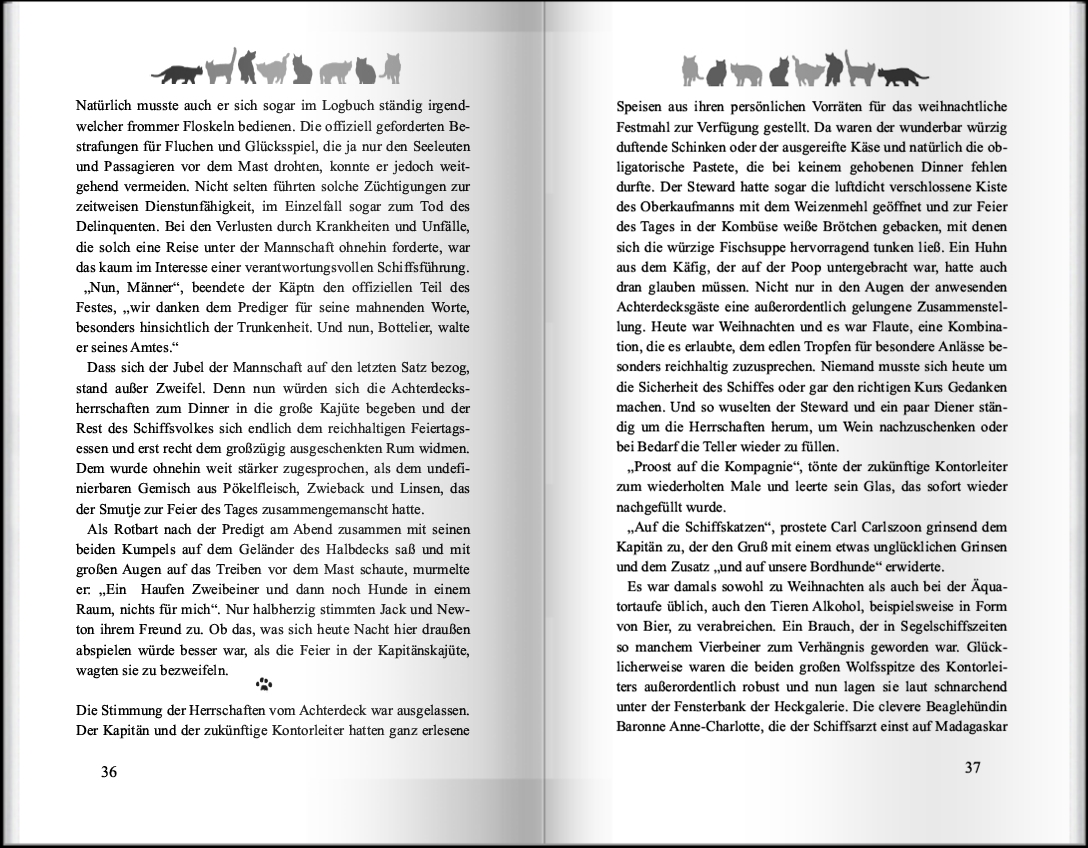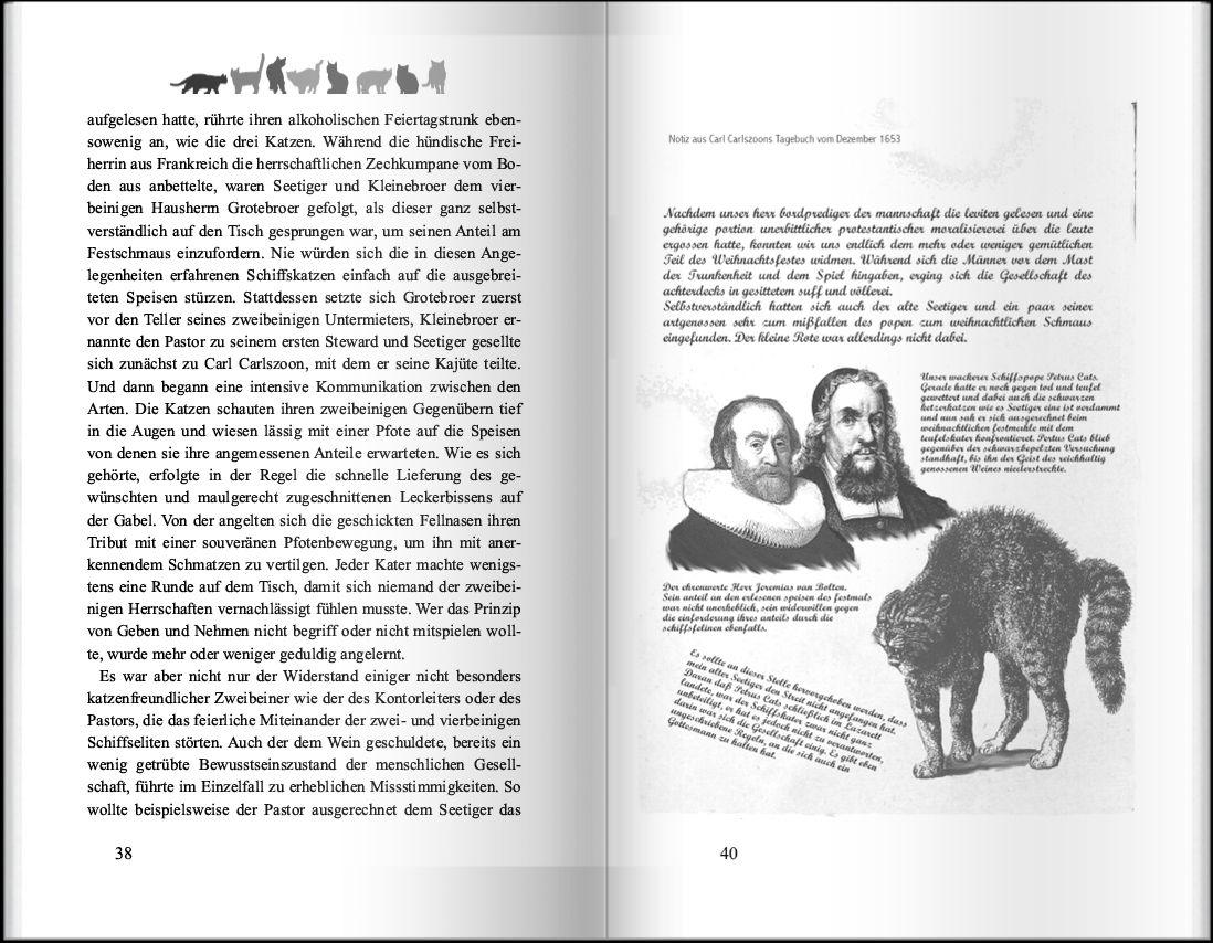 24.12.1653: Vor wenigen Wochen hat Rotbarts Schiff, die Zeeland, die Reede von Texel verlassen. Nun liegt sie irgendwo vor den kapverdischen Inseln in einer Flaute. Einem ungestörten Weihnachtsfest steht kaum etwas im Wege. Einige der Schiffskatzen haben sich in der Kapitänskajüte dem Gelage der Achterdecksgäste angeschlossen. Wie es da abging, verrät die unten stehende Leseprobe aus dem Buch „Rotbartsaga. Schiffbruch vor Sumatra“.